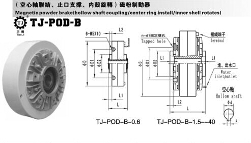 分為中空旋轉(zhuǎn)型磁粉制動器中空軸聯(lián)結(jié)、止口支撐,為外旋。